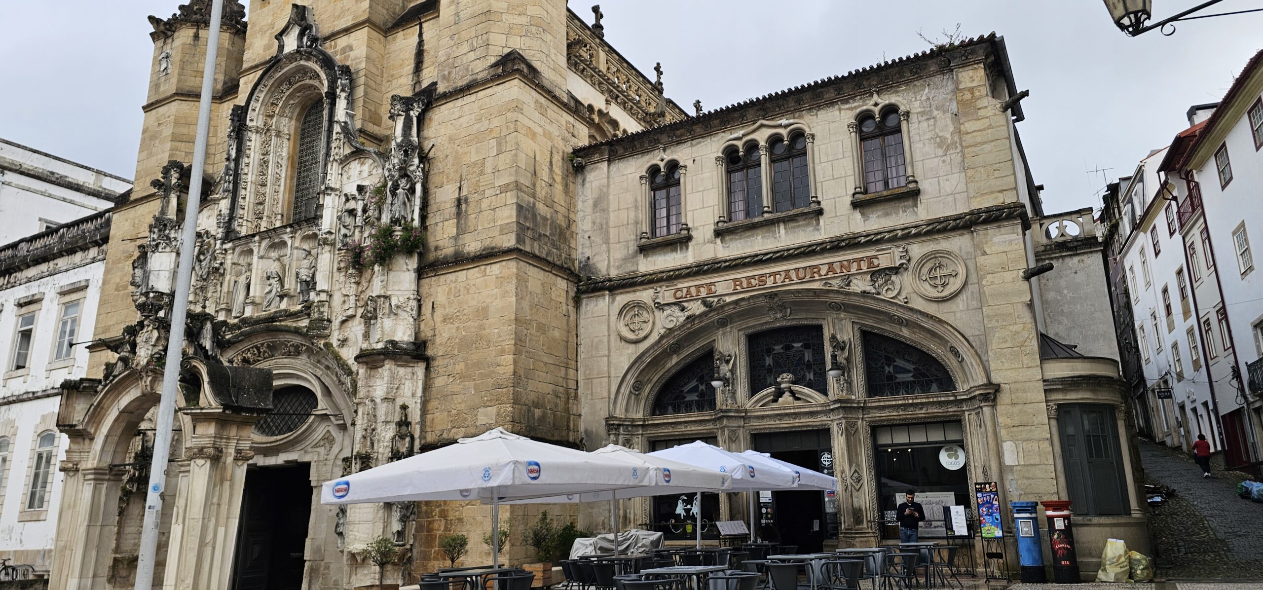 After driving 1.5 hours, we stop to explore Coimbra, a city famous for its ancient university and impressive architecture. Wandering through Coimbra feels like stepping into a living tapestry of history, culture, and academic prestige. The city, perched along the banks of the Mondego River, carries an air of timelessness, where medieval streets wind past centuries-old monuments and the echoes of student life fill the air. Coimbra’s charm unfolds in its monasteries, where Portugal’s first kings rest, and in the Santa Cruz Church, a stunning example of Manueline architecture.