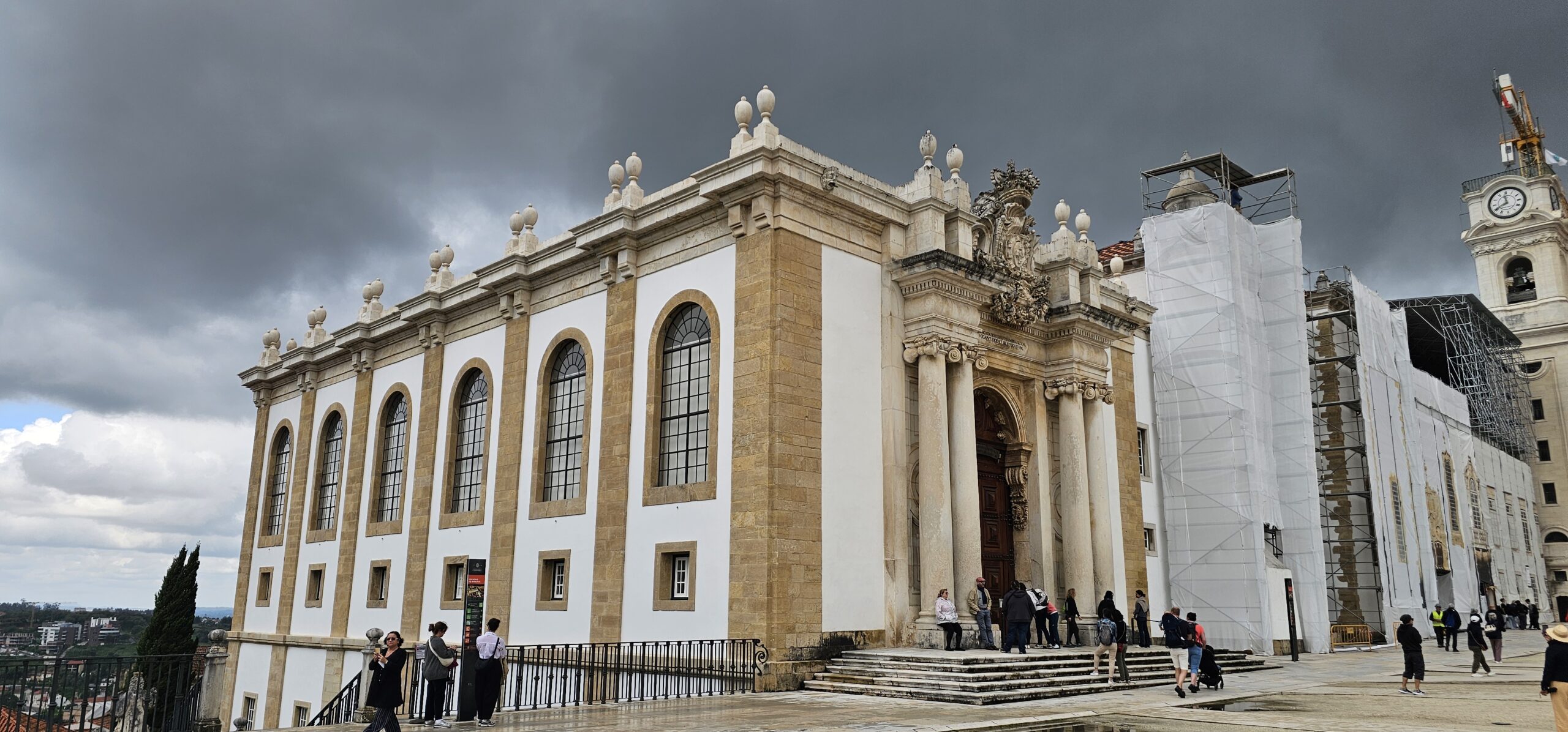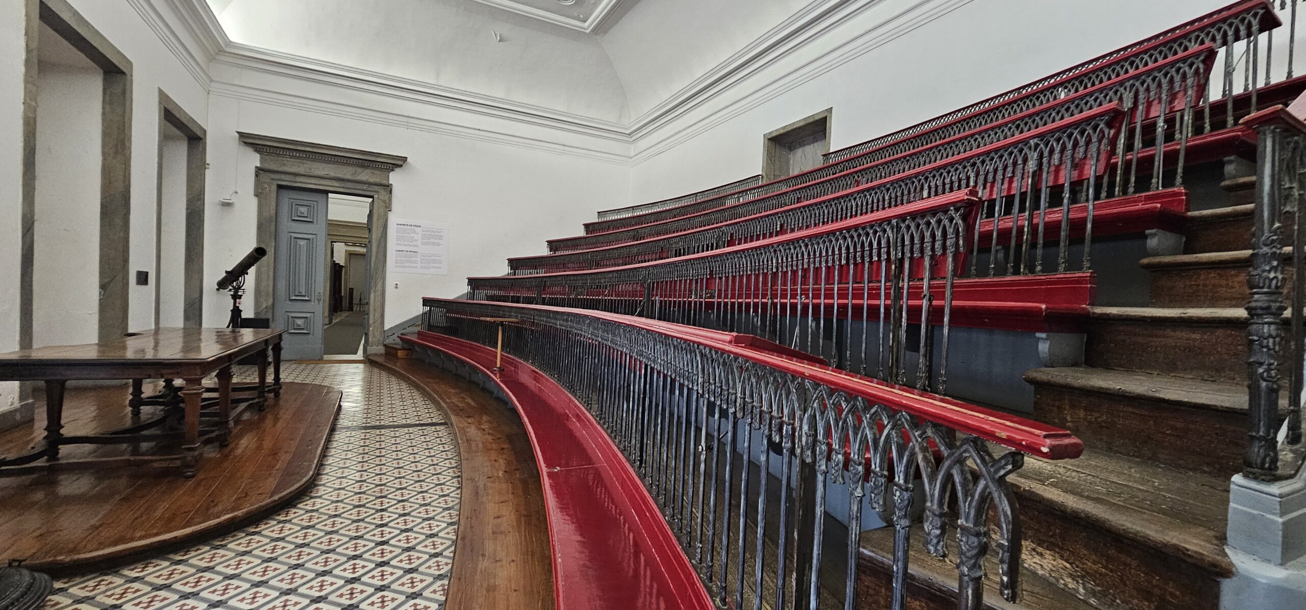 We have timed-entry tickets to explore the Biblioteca Joanina, a baroque masterpiece that embodies the grandeur of the Age of Enlightenment. The entrance is slightly challenging to find, but once we step inside, we find ourselves in an area that served as “the prison”. The university once had its own legislation and governance and therefore, needed a prison. It is the oldest medieval prison in Portugal. Today, it is basically a holding place out the elements until it’s our turn to enter the actual library. When we finally enter the library, it stuns with its gilded interior and towering 2-story bookcases made of exotic woods (no photography allowed). The library houses over 70,000 volumes with many rare manuscripts and first editions. There are three rooms that make up the library. The first room is gold and green, the second is gold against red and the third room is gold on black. We learn there’s a bat colony here and each evening, the tables are covered so when bats come out at dusk to eat any insects that would otherwise be harmful to the precious books and tables.